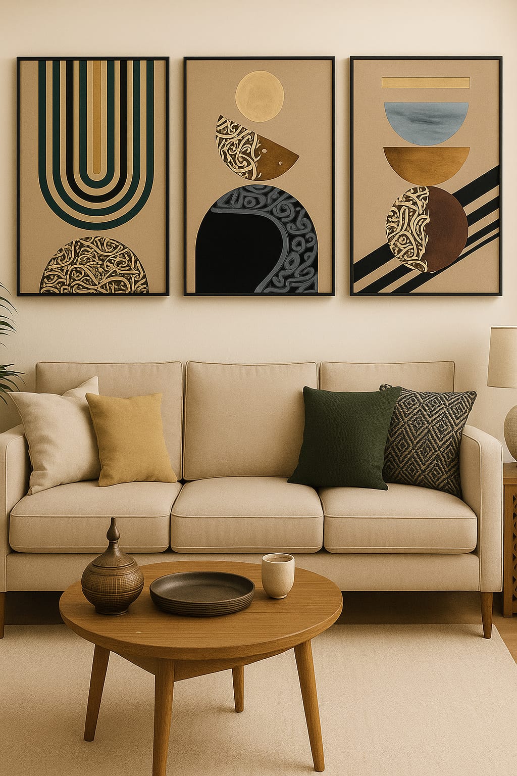 Cette série de trois œuvres calligraphiques contemporaines explore les liens profonds entre la forme, la lumière et la spiritualité dans l’esthétique arabe.