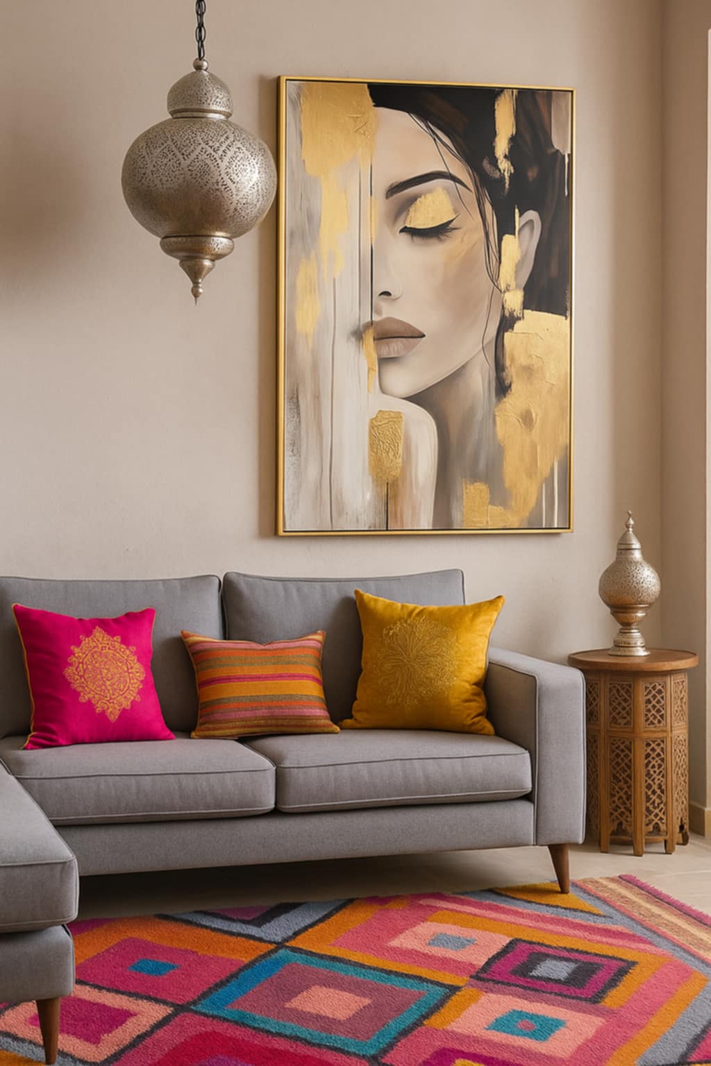 Ce tableau incarne la force tranquille de la femme, entre douceur des traits et éclats de lumière.